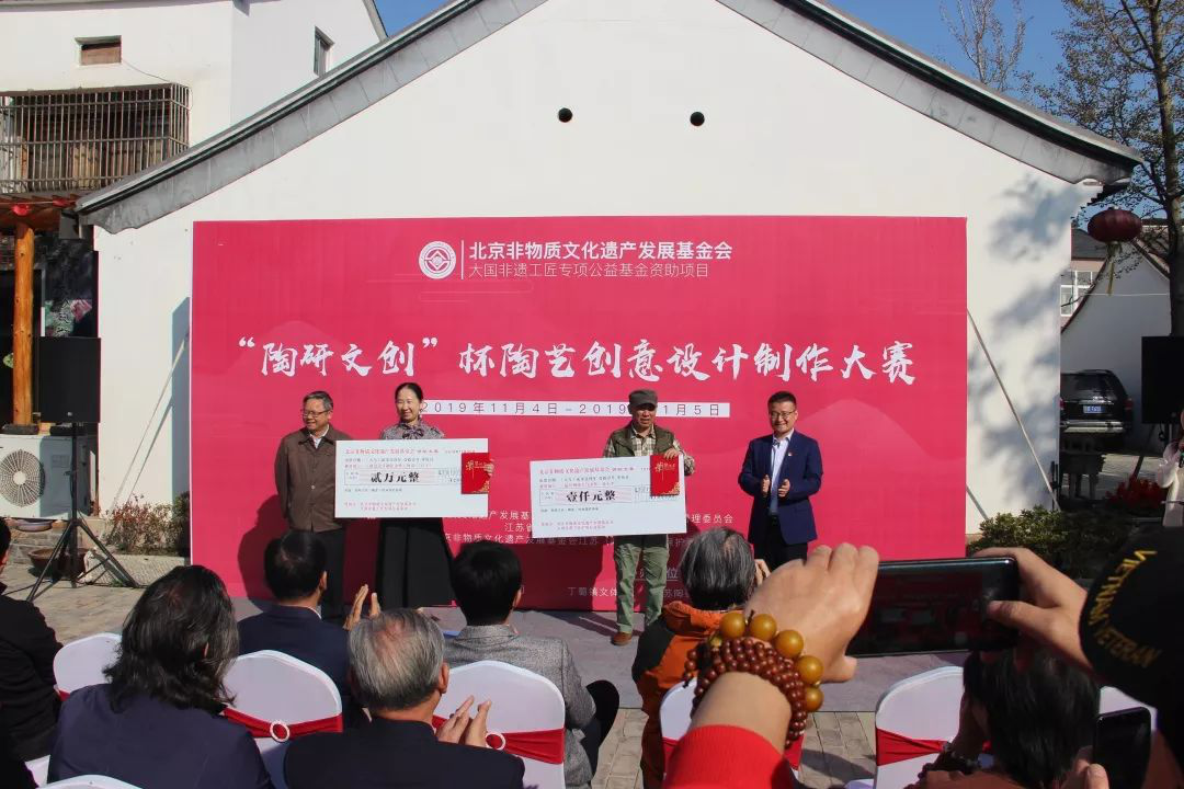 宜興市文廣新局局長許夕華 ,丁蜀鎮人民政府副鎮長杭海東為創意設計制作金獎、網絡人氣金獎頒獎