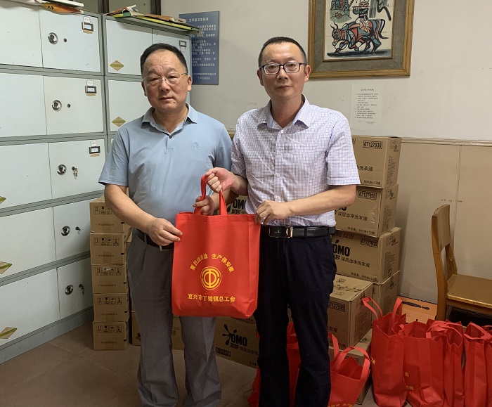 近日,丁蜀鎮總工會開展“夏日送清涼,生產保安康”活動。7月15日,丁蜀鎮總工會副主席賈俊強對我公司一線職工進行走訪慰問,并送來毛巾、洗發水、花露水等防暑降…